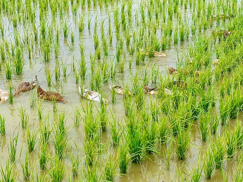 与这群忙碌的鸭子形成鲜明对比的,是文湘桃从容的身影。这位被乡亲们亲切称为“鸭司令”的生态农业践行者,十年前流转土地2万多亩成为种粮大户,足迹遍布全县8个乡镇。然而,在10来年的规模化双季稻种植中,文湘桃第一个感受到了在粮食生产中的“发展瓶颈”:农药化肥用量持续增加,土壤板结严重,地力明显下降。“那时总觉得地越多越好,现在明白了,可持续发展才是关键。”文湘桃感慨道。