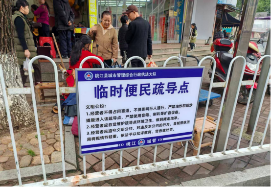 在桃花路原桃江县中医医院门口的临时便民疏导点内,几位摊贩正按照划定区域有序经营。现场整洁有序,通行通道保持畅通。“以前推着摊子到处跑,既担心影响交通,又没固定客源。现在有了固定点位,生意更踏实安心。”摊贩王女士对此十分满意。