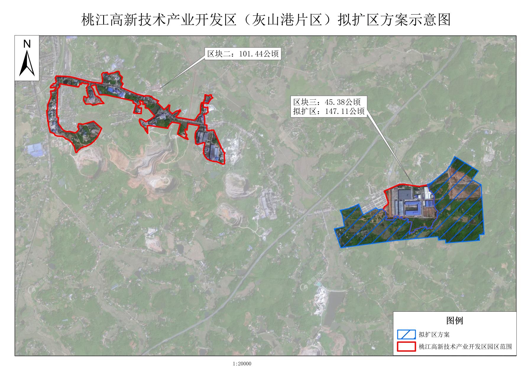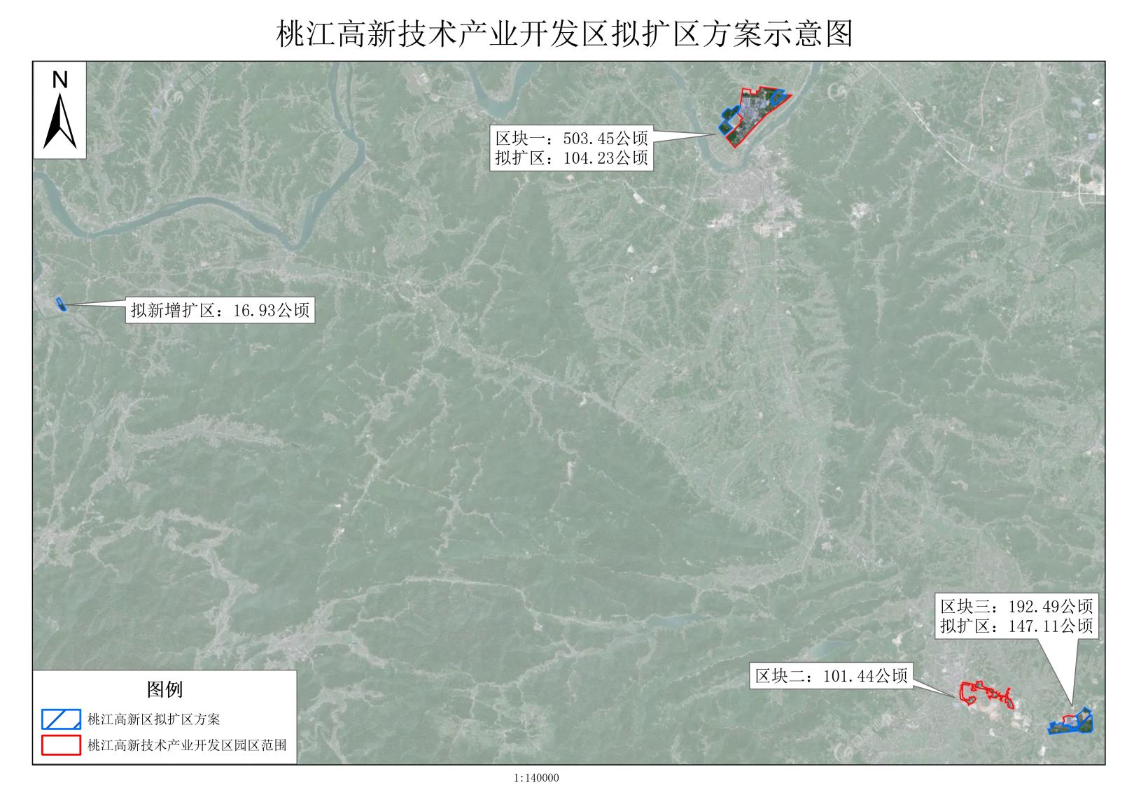 以湖南省发展和改革委员会《关于长沙岳麓高新技术产业开发区等20家园区调区的复函》(湘发改函〔2024〕60号)文件公布的桃江高新技术产业开发区边界范围546.04公顷为基础,拟扩区面积268.27公顷,扩区后开发区面积为814.31公顷。其中: