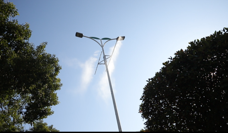 近日,县城管执法局市政设施管理站在县城芙蓉路、金凤路等主干道的路灯杆上,安装了17组69处智能喷淋设备。通过高压雾化技术吸附空气中的颗粒物,为市民营造清新舒适的出行环境,成为我县大气污染防控的重要举措。