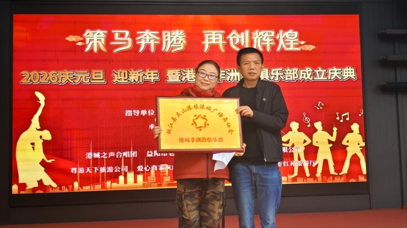 12月29日下午,灰山港镇文化公园内乐声飞扬、人头攒动,由镇社会事务综合服务中心主办的2026庆元旦、迎新年暨港城非洲鼓俱乐部成立庆典在此举行。活动以“策马奔腾,再创辉煌”为主题,将特色文化展演与社团揭牌相结合,为群众献上了一场兼具激情的文化盛宴。