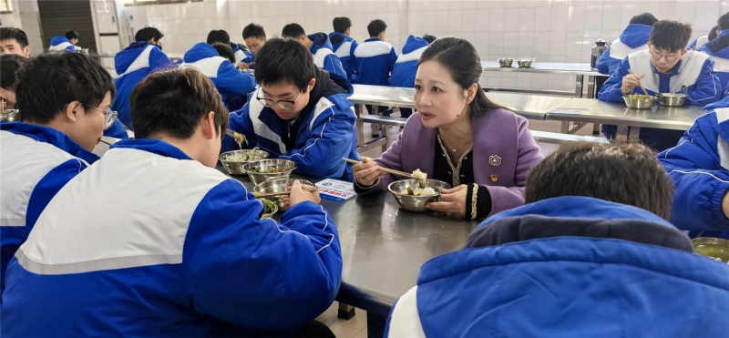 龙芙蓉在食堂陪餐 胡卫红 摄