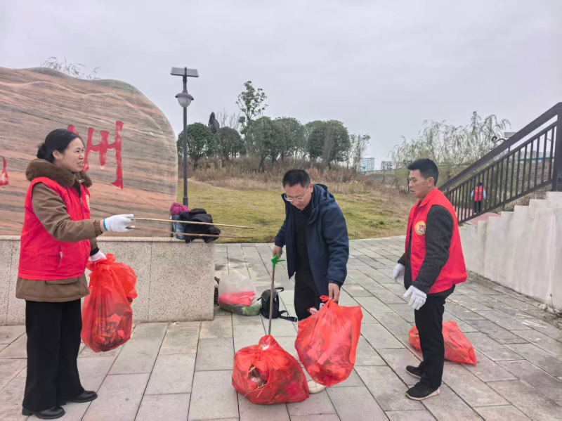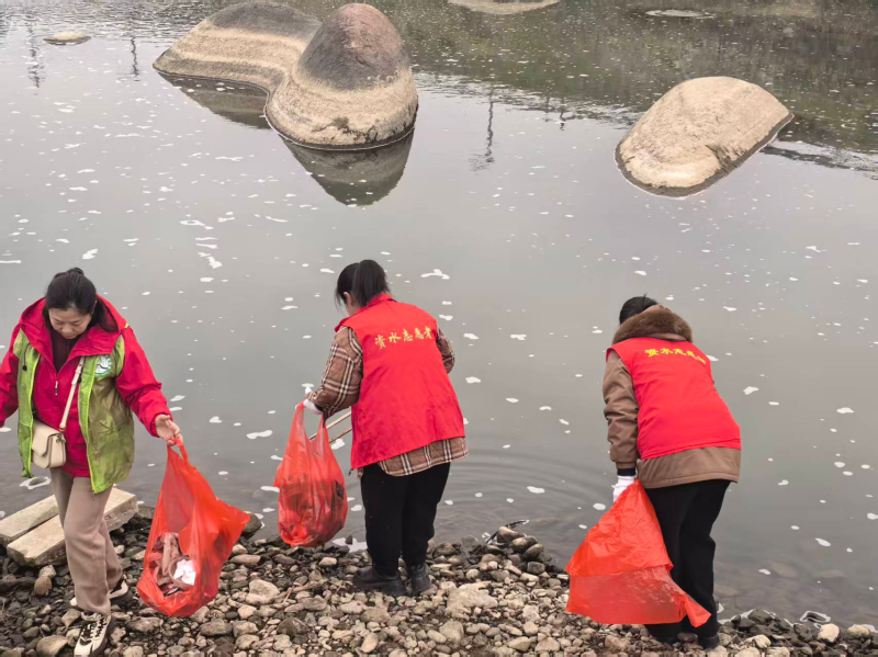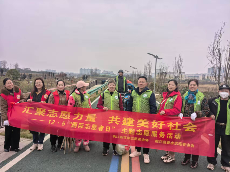 12月5日,国际志愿者日。十多位身着红、绿马甲的资水志愿者和浮邱山环保分会的志愿者聚在桃花洲上,开展拾捡垃圾、清理河滩及向市民宣传环保的公益活动,以迎接属于他们自己的节日。