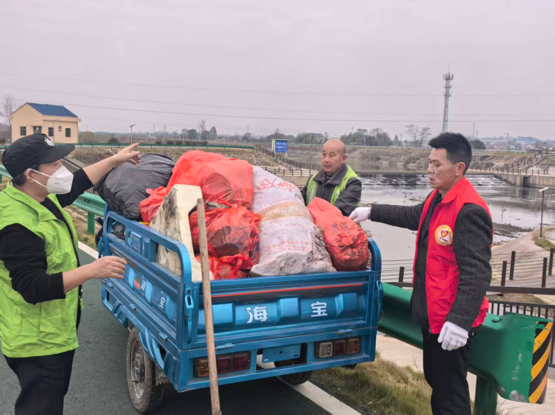 值得一提的是,洲堤下的两大堆垃圾,随风吹来阵阵臭味,令人作呕,但吴起、谢拥军、刘凤、罗爱英等几位志愿者,忍住臭气,不怕脏和累,用夹子夹、用手捏,用铲子铲,捡了十多袋。两大堆臭味难闻的垃圾,硬是被他们清理得干干净净,赏心悦目。然后由住在洲旁的志愿者谢拥军,开来了他家的小四轮运送垃圾。