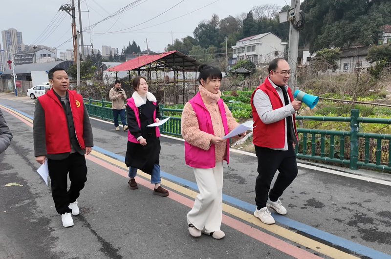 12月5日上午,记者在桃花江镇团山社区看到,工作人员操控无人机盘旋上空,高清镜头实时传回田间情况;由社区干部、党员志愿者、群众代表组成的巡查队身着红马甲,手持扩音器穿梭于田垄村落,逐一排查秸秆堆积隐患;宣传车沿着村道缓缓行驶,禁烧政策随着广播声传遍家家户户,一幅“人防+技防”立体防控的秸秆禁烧画卷正生动铺展。