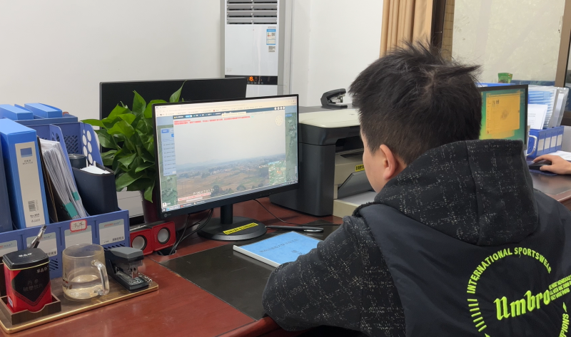 工作人员利用“铁塔哨兵”智能监管平台查看田间是否存在火点 杨慧 摄